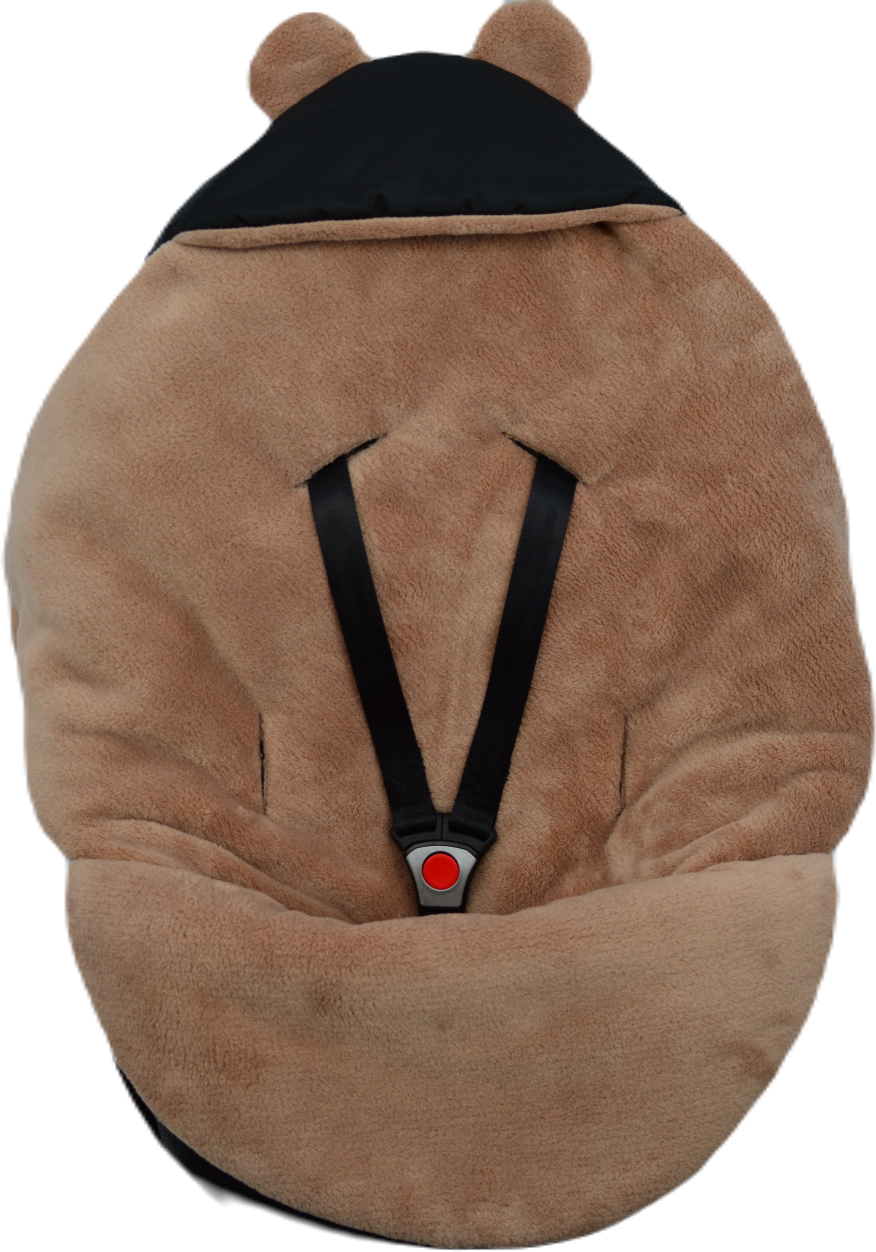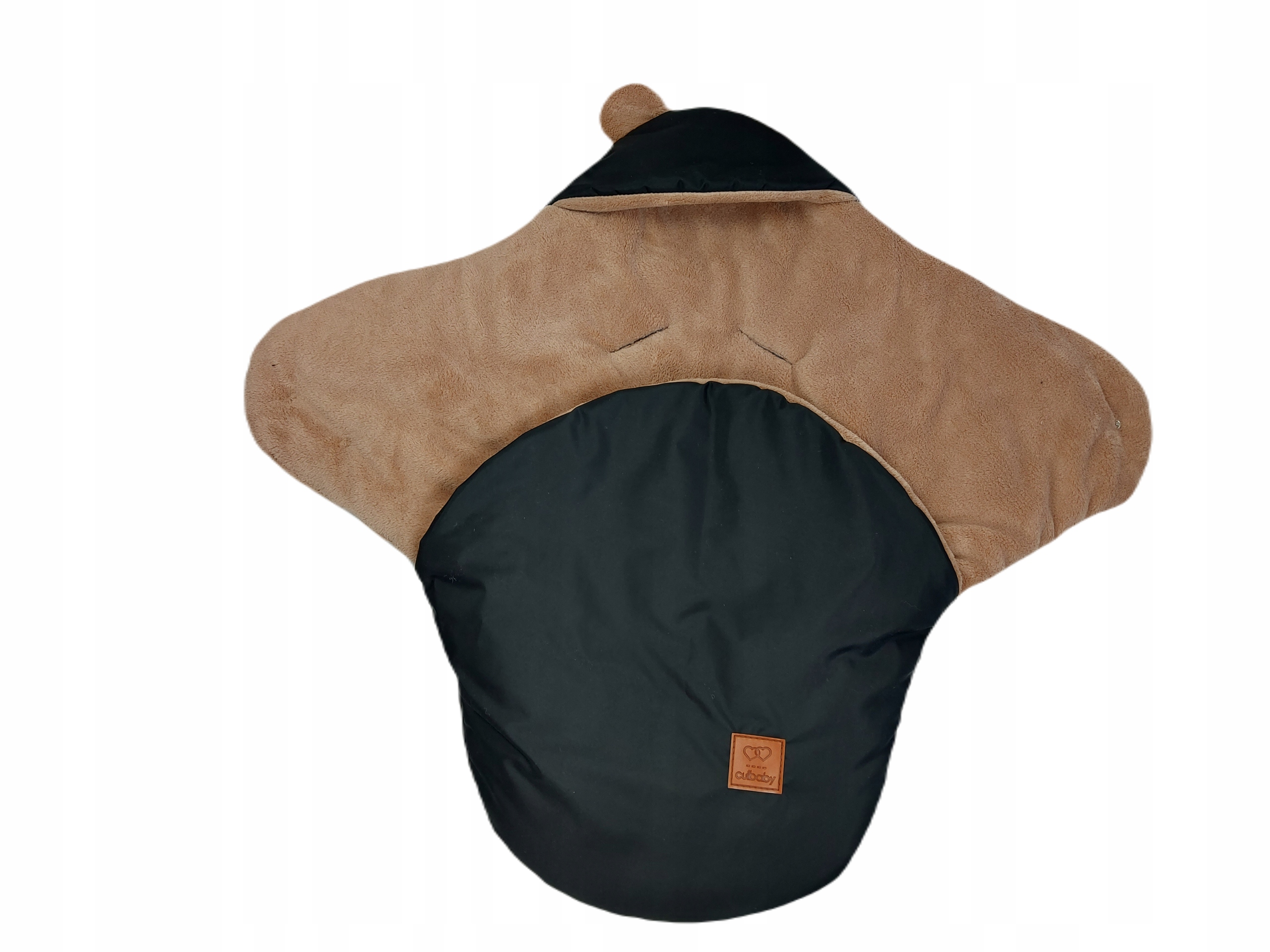 У спального мешка есть кепка, покрывающая голову ребенка. Цвета ткани, смешные уши на капюшоне, потому что спальный мешок и смешанный ребенок становятся милыми.