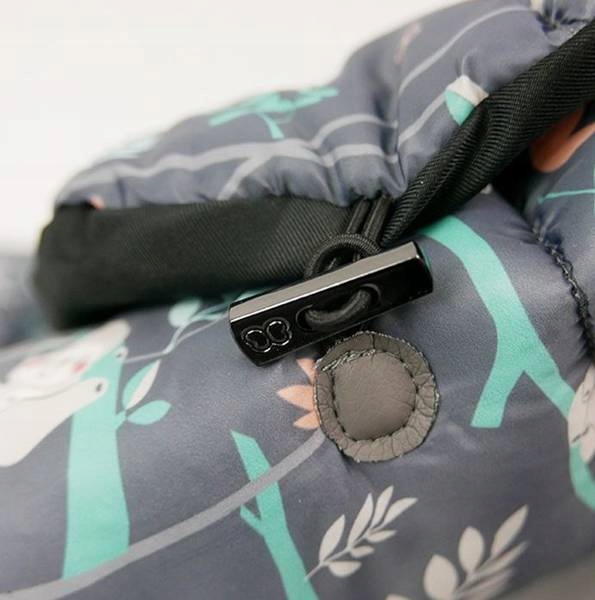 теплый, но в то же время приятный. – Дно спальника покрыто специальным материалом, что делает чистку легкой и комфортной. – Спальный мешок имеет наполнитель, который обеспечивает тепло, а также придает изделию эстетичный вид. крепление, позволяющее регулировать ширину спальника в зависимости от потребностей пользователя – Дополнительная защита сбоку, позволяющая легко установить спальник на коляску или сани, ограничивая движения ребенка – Возможность регулировки высоты. ремней на трех уровнях – Встроенный светоотражающий элемент в нижней части спального мешка, улучшающий видимость в темноте – Оригинальный рисунок, разработанный командой дизайнеров бренда Baby Design