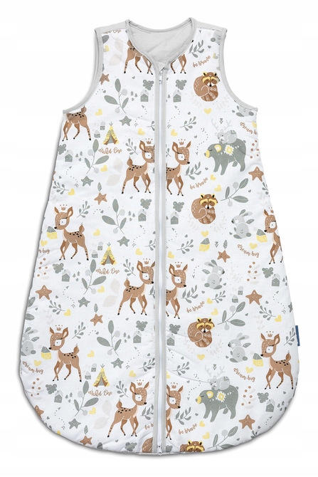 Спальный мешок размера М подойдет и детям старшего возраста (9–18 месяцев), обеспечив им тепло и безопасность. Он изготовлен из мягкого хлопка, наполнен подушечкой. Он не содержит твердых элементов, которые могут вызвать раздражение кожи ребенка. Спальник оснащен двухсторонней молнией, фиксирующейся на шее, что позволяет менять подгузник, не вынимая ребенка из спальника. Сочетается с другими продуктами нашего бренда.