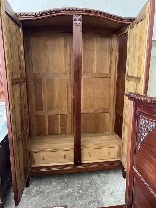 Предмет продажи — уникальная спальня в стиле модерн, состоящая из: туалетного столика с мраморной столешницей, шкафа с зеркалами, 2-х прикроватных тумбочек и зеркала.
