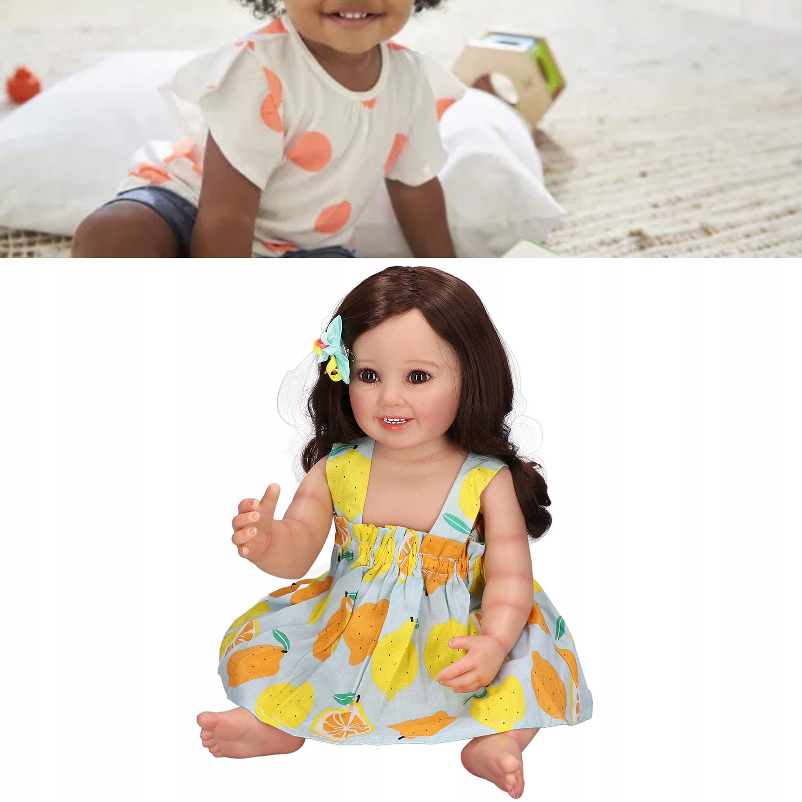 1. Полный комплект аксессуаров: кукла реборн с открытым глазом, заколка для волос и соска, бутылочка для кормления и т. д., что делает куклу более реалистичной и естественной.