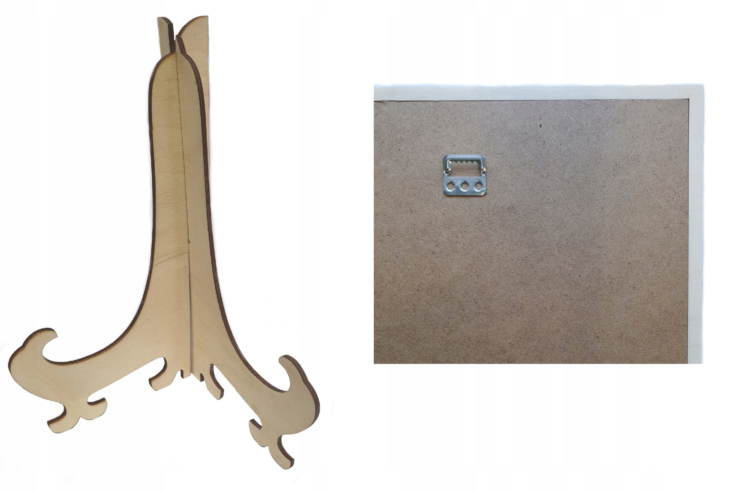 - металлическая подвеска на обратной стороне картины для крепления на стену , дополнительно подставка для размещения на стойке