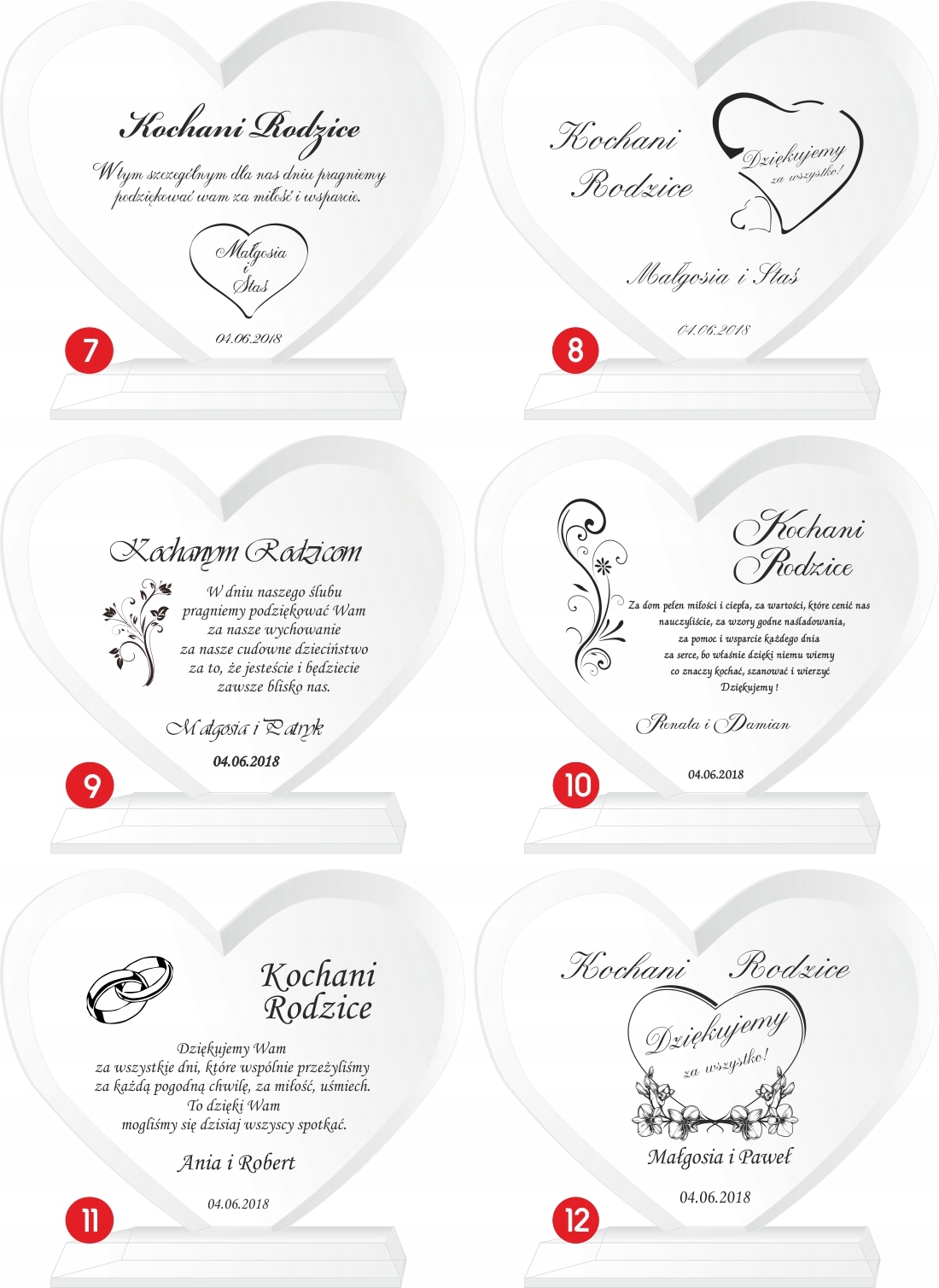 Тексты и варианты могут свободно изменяться по вашему усмотрению (тексты, отличные от представленных в наших вариантах, следует присылать в редактируемом виде, например, блокнот), а числа годовщин являются примерными значениями, которыеможно изменить.