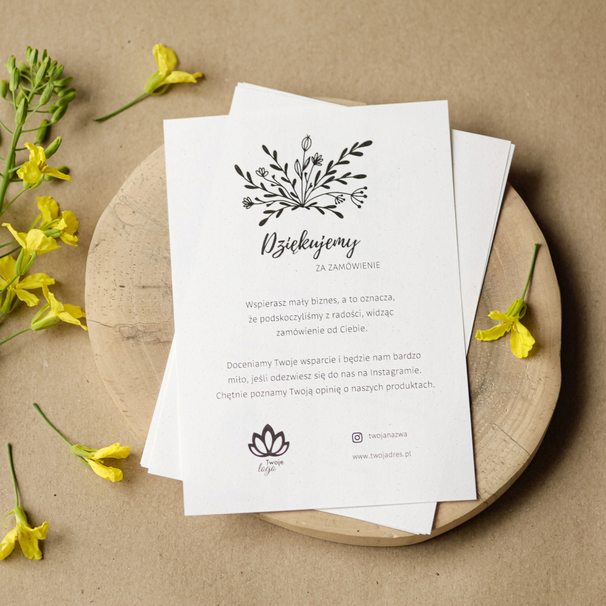 Представленное здесь предложение касается набора из 100 штук благодарственных писем для клиентов с цветочным мотивом.