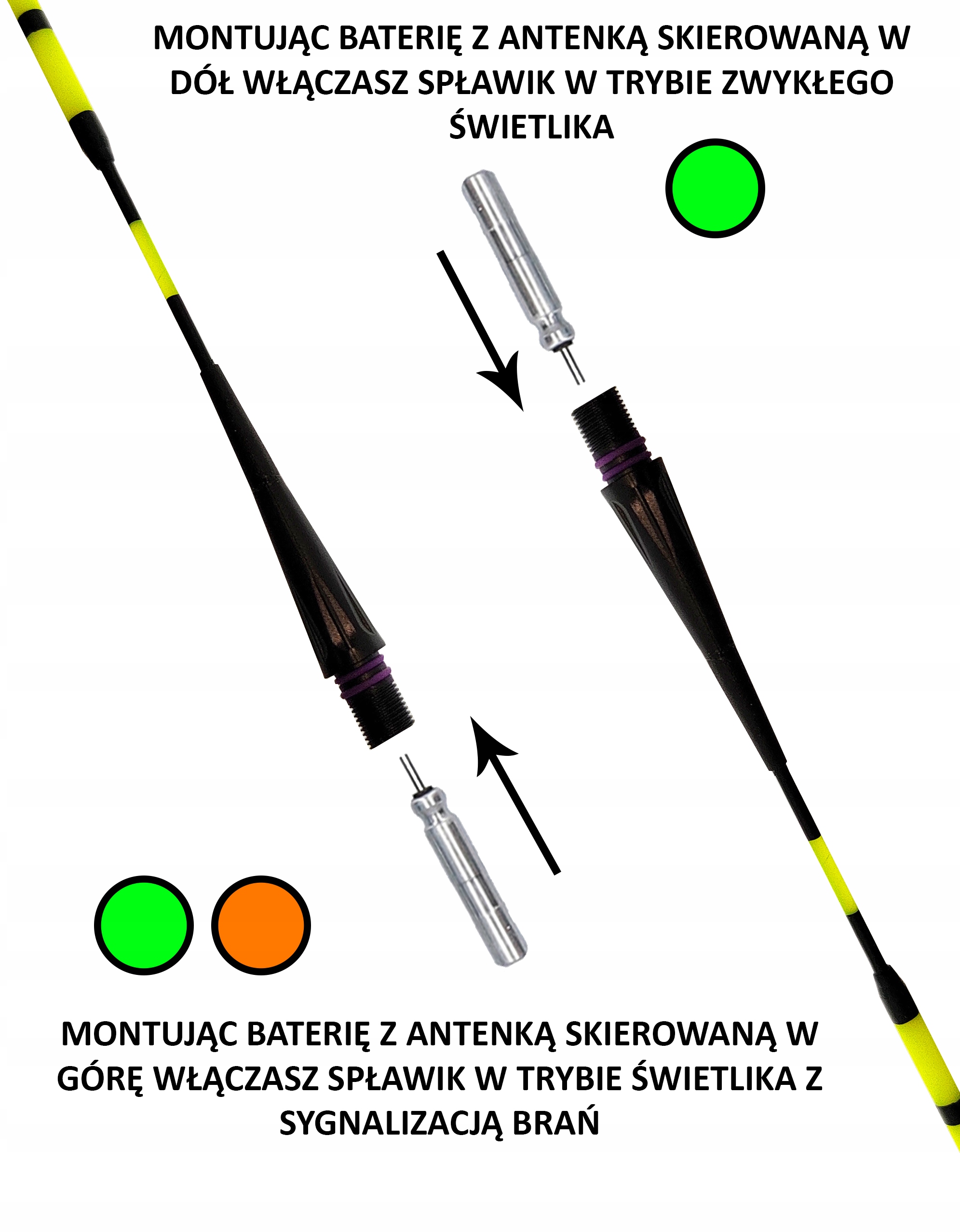 Поплавок со специальным гравитационным модулем – сигнализирует о поклевке изменением цвета антенны с желтого на оранжевый. Более того, его можно использовать по-разному: полностью без подсветки, запускать в режиме светодиодного фонаря без индикации поклевки или запускать в режиме фонаря с индикацией поклевки. Поплавок реагирует на более быстрое движение вверх/вниз, но не сигнализирует о естественном движении поплавка в воде.