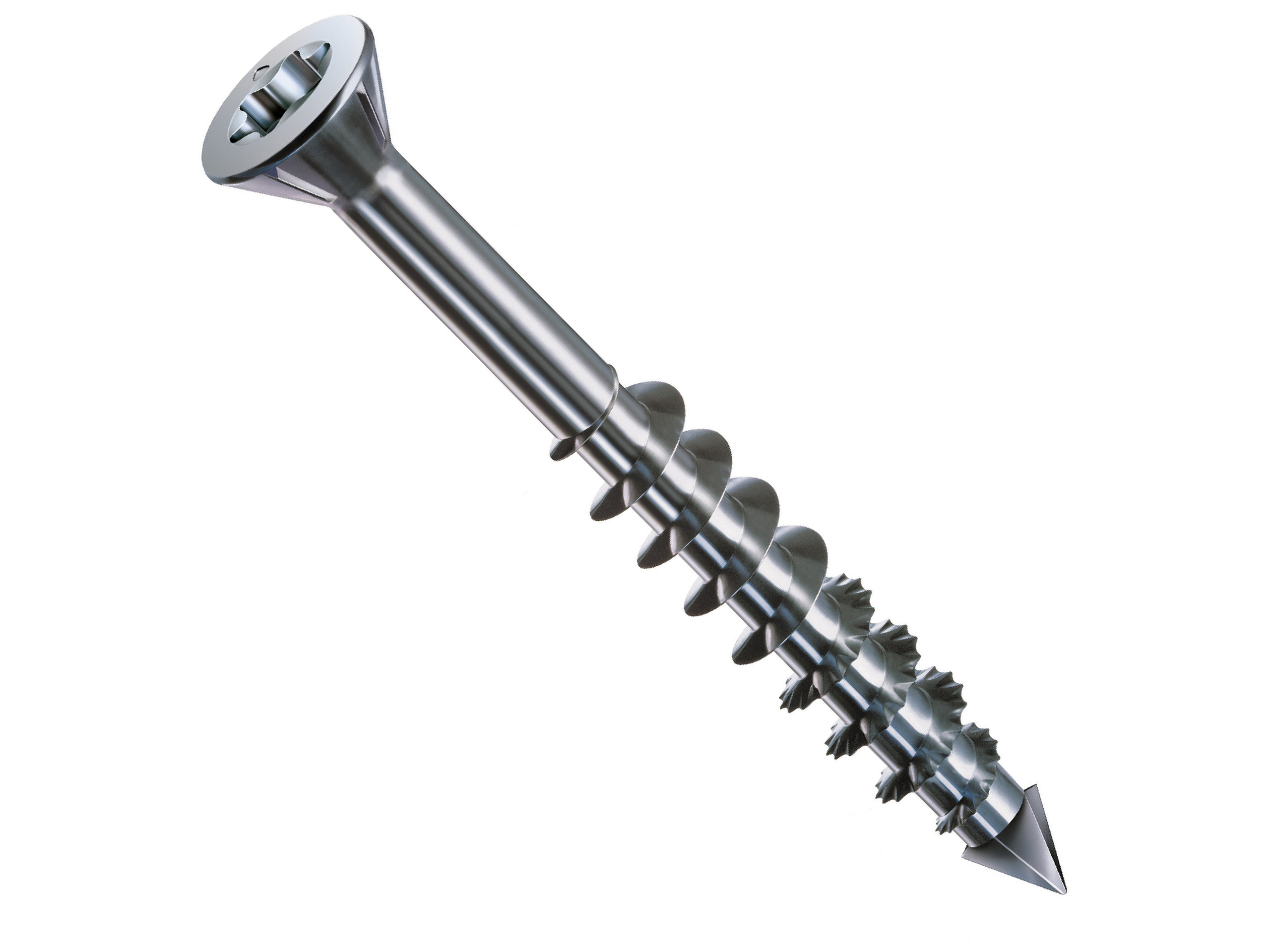 Spitz Spax Cut имеет форму стрелки и может быть тщательно расположена. Специальная геометрия винта эффективно снижает расщепление древесины или фанеры (например, платы MDF). С очень твердым деревом рекомендуется тренировать.