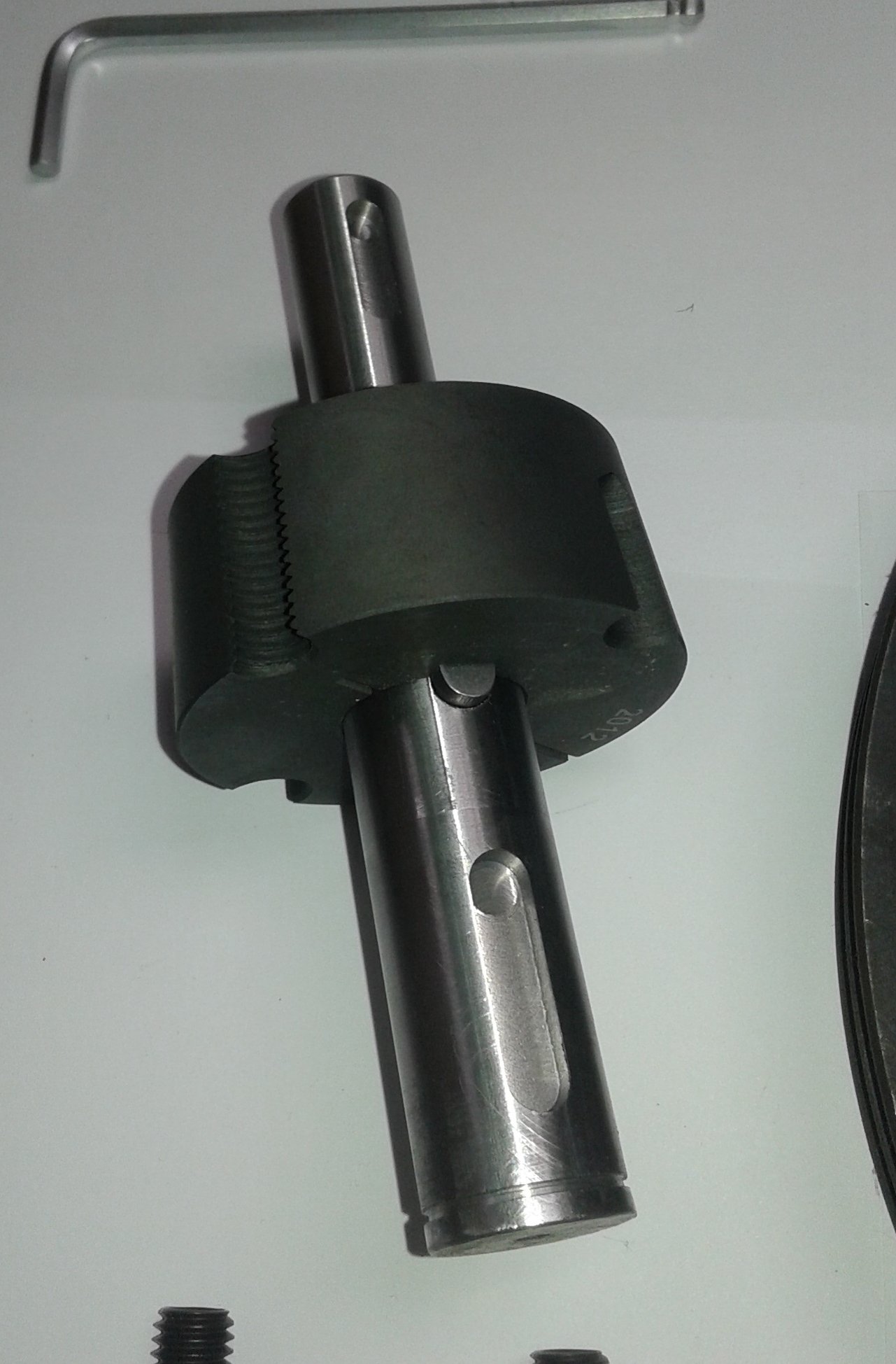 На фото рядом с ним показано все необходимые элементы, чтобы встроить колесо на вал. Они: