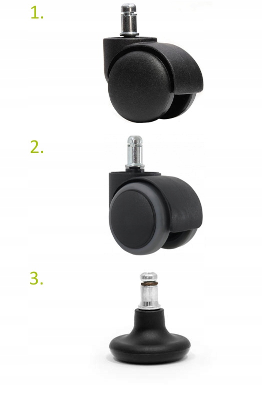 2. Если у вас пол с жесткой структурой (например, паркет, панели, плитка), мы предлагаем заменить колеса на специально адаптированные (т.н. мягкие колеса). Имеют специальное покрытие против царапин (пример на фото ниже серый — цвет покрышки доступен в нескольких цветах и может меняться в зависимости от партии). Стоимость замены колес всего 20 злотых. Если вы выбираете наложенный платеж, просто напишите продавцу информацию о том, что вы решили заменить колеса, тогда к стоимости наложенного платежа будет добавлена стоимость 20 злотых.