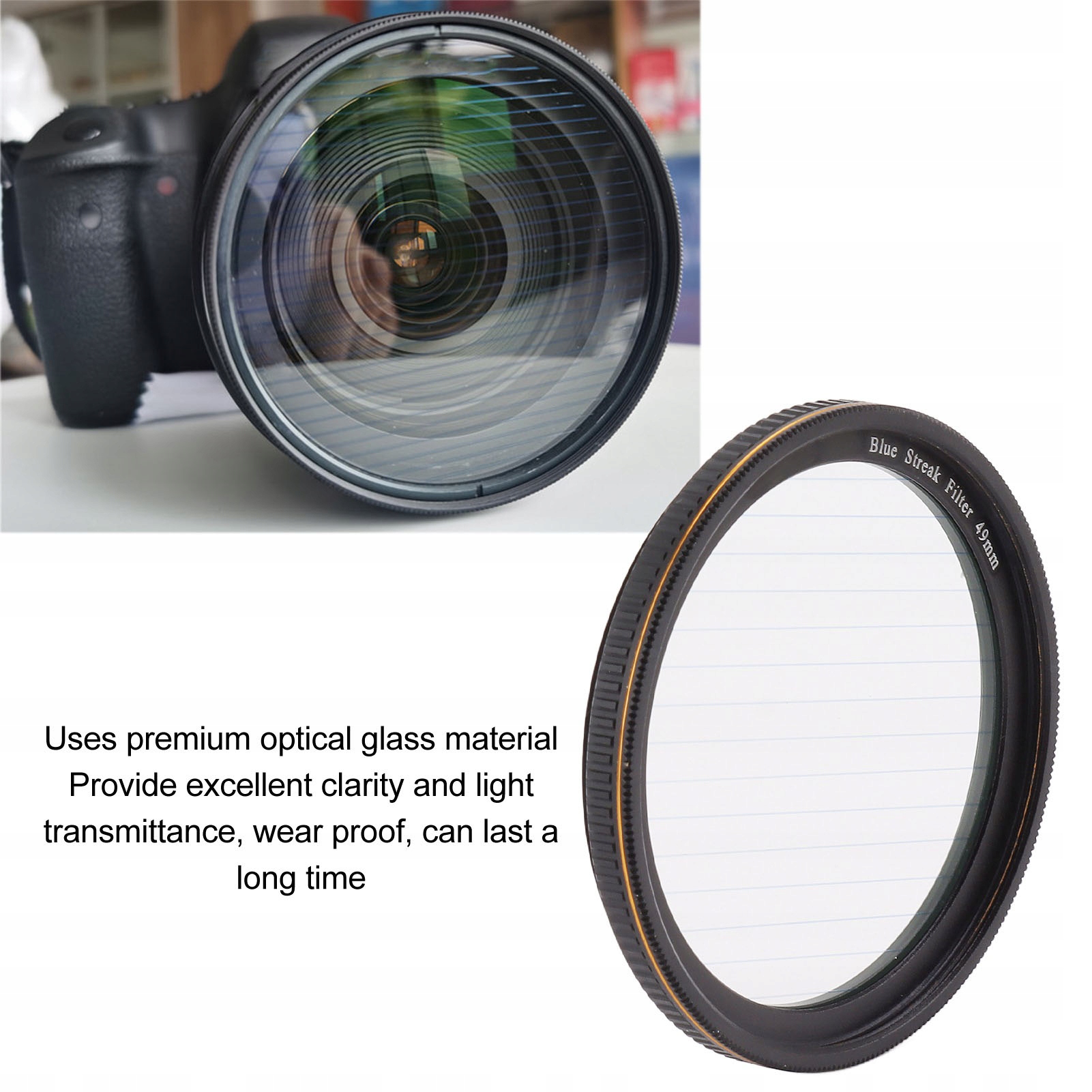 2. Увлекательные полосы: этот аксессуар, оснащенный синим фильтром полос, добавляет завораживающие полосы в точечные источники света, создавая захватывающий и профессиональный эффект кино. Получите появление широкоэкрадной пленочной линзы без необходимости менять оборудование, повышая качество ваших фильмов благодаря визуальной привлекательности, напоминающей фильм.
