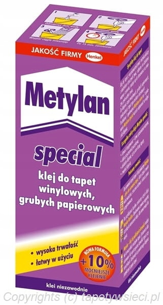 Для поклейки специальных обоев, например виниловых, плотных и тяжелых обоев бумажных, с тиснением , шелковые и текстильные обои, обои «рауфаза» и акриловые обои. В случае очень тяжелых обоев или повышенной влажности в помещениях рекомендуем добавлять 20% Метилана экстра (на 1 упаковку Метилана специального 200 г и на 1 упаковку Метилана экстра 750 г). Подходит для использования на свежей и сухой штукатурке. Гарантирует надежность и долговечность приклеивания. Метилан специальный содержит фунгициды, предотвращающие образование плесени в клеевом растворе.