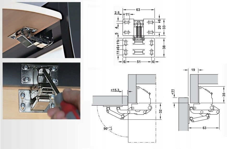И, наконец, самое приятное – только в этом варианте петли вы получаете и саму петлю, и полкодержатель, который удерживает створки весом 2,1 кг в открытом положении :) а значит, для шкафа, открывающегося вверх, не нужно использовать никакой дополнительной фурнитуры. h2>