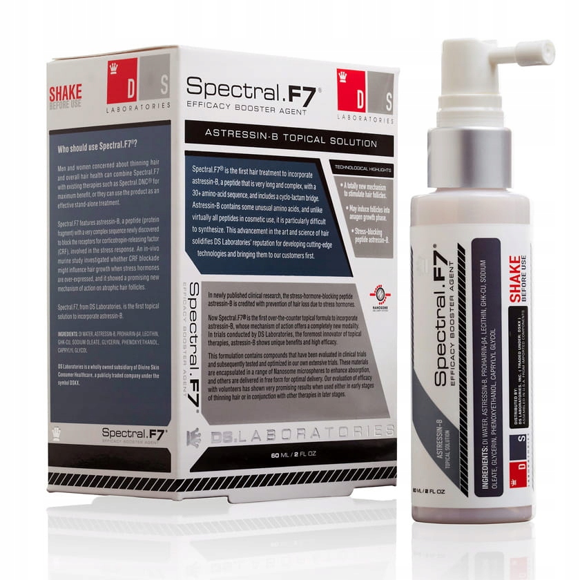 Spectral F7 60 мл — первый в своем роде препарат, содержащий Астрессин B, пептид с длинной аминокислотной последовательностью, который эффективно предотвращает появление волос. потеря