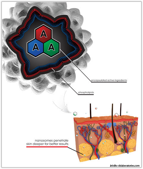 Это технология, которая использует микроскопические частицы (наносомы) для транспортировки ингредиентов препарата глубоко в кожу, а затем высвобождает их, чтобы они воздействовали на источник проблемы. Действие наносом обычно продолжается непрерывно в течение 15 часов.