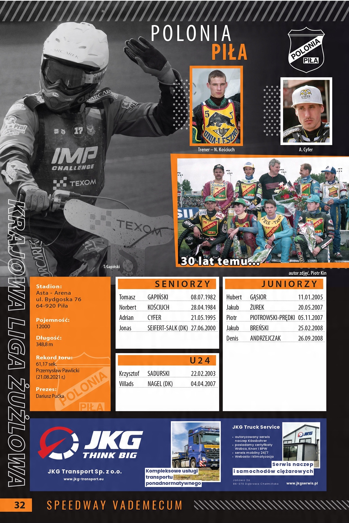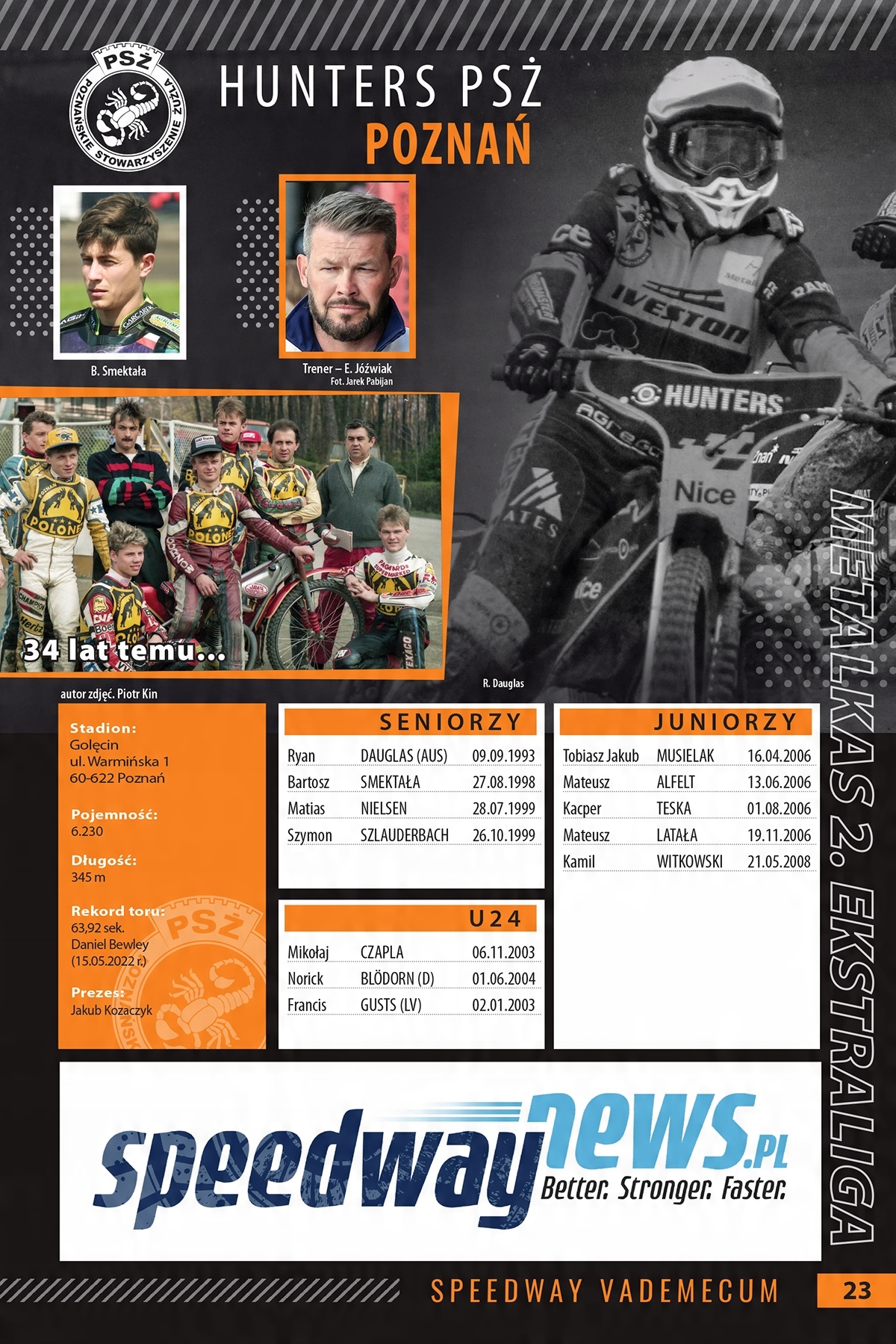 Speedway Vademecum 2025 расписания, командные склады, коллективные таблицы SGP и SEC. На 68 страницах вы найдете самую важную информацию об играх, в лиге Спидвея Польши и других европейских стран. Часть, охватывающая игру в нашей стране, украшена обложкой с Maciej Janowski и Patrick Dudek. Он содержит графики событий в Польше и на всех уровнях чемпионата мира и европейских чемпионатов, регулирующих инноваций, команд команд PGE Ekstraliga, Metalkas 1. Ekstraliga, KLZ и U24 Ekstraliga. После того, как он изменил склад на 180º, отдельный чемпион мира с выигранными медалями начинает часть, посвященную соревнованиям в других европейских странах. У нас здесь есть командные композиции и графики лиги: Германия, Дания, Швеция, Франция, Великобритания, Чехия, Россия, Норвегия, Финляндия. А также даты событий в странах, где лига не работает, и фанаты могут наслаждаться только несколькими или дюжинами или около того мероприятия в год. Эти страны включают в себя: Бельгию, Нидерланды, Словакия, Италия, Венгрия, Словения, Хорватия, Румыния и Эстония, важной частью Спидвея Вадемекум являются коллективные столы, размещенные в нем для участия в Гран -при и SEC.