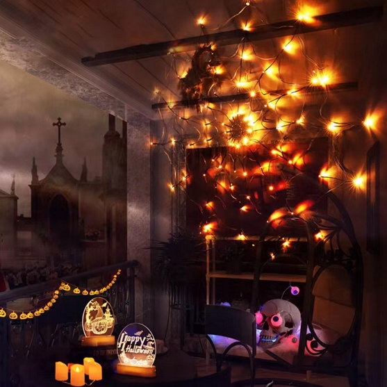 SPIDER WEB 70 LED ШТУЧНЕ ОСВІТЛЮВАННЯ HELLOWEEN ОРАНЖ
