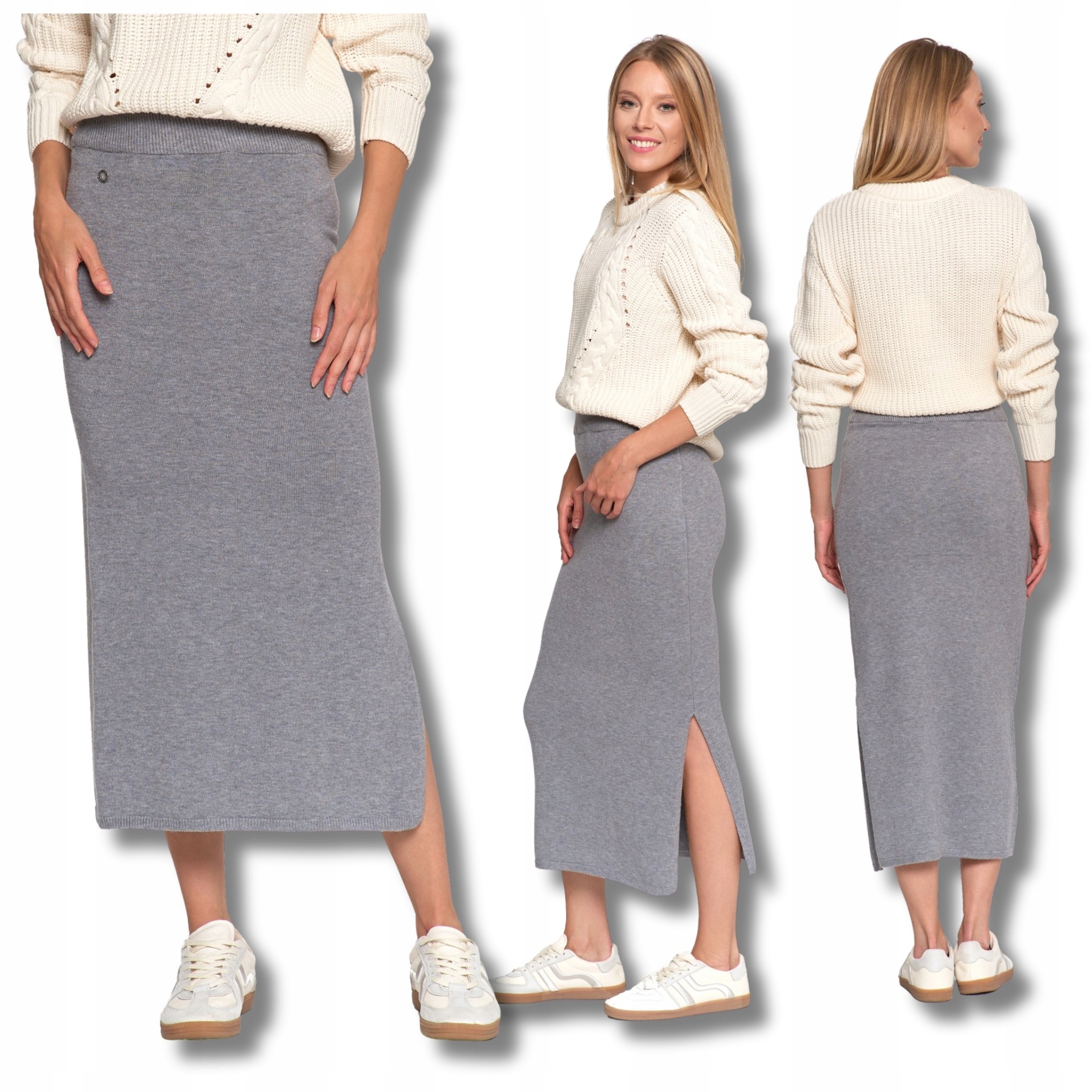 СПІДНИЦЯ ЖІНОЧА СІРА СВЕТР-МІДІ З РОЗРІЗОМ ОЛІВЕЦЬ MORAJ