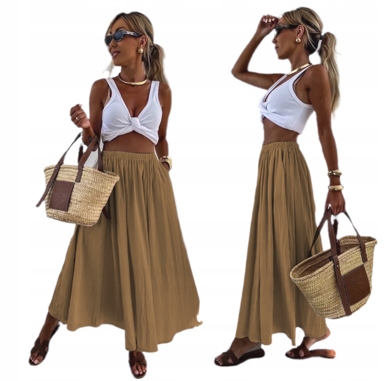 Классическая длинная материальная юбка с карманами. Сделанный из приятного материала, он очень хорошо адаптируется к телу. Длинная юбка - это классический элемент гардероба, который вводит ноту повседневного очарования и комфорта для стиля. Эта юбка является модной и практическим решением для многих раз.