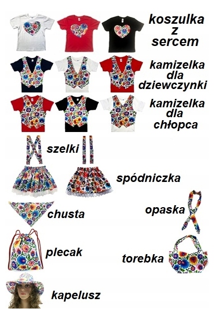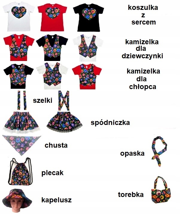 Красивые, региональные дизайны Lowickie, Kashubian, Highlander и Fairy -Stale, дополненные кружевом, полностью отражают очарование юбок и жилетов. Резина на ремне шириной 4 см, втянутая в ремень, отлично подходит для адаптации к силуэту каждого ребенка.