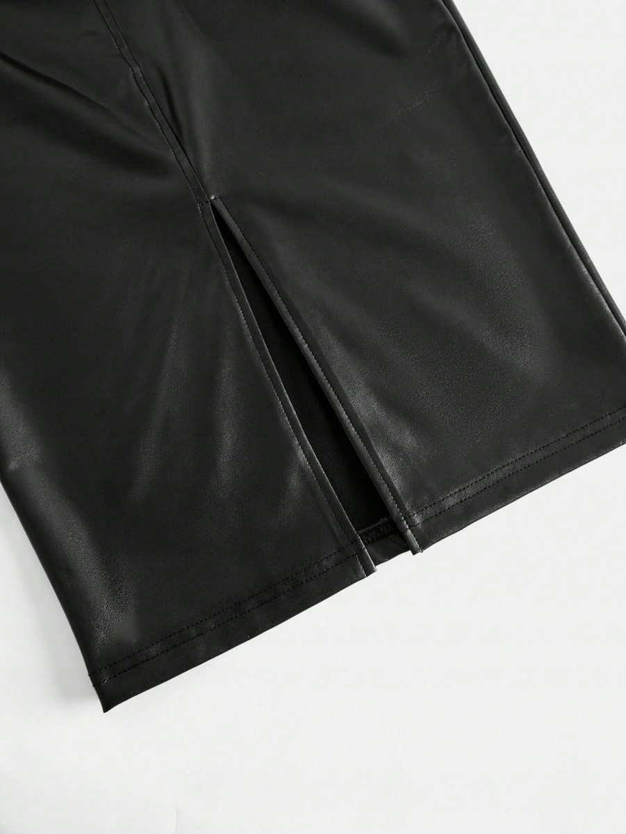 СПІДНИЦЯ МІДІ З ЕКОЛОГІЧНОЇ ШКІРИ SHEIN M 184