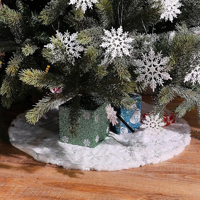 - Подходящий размер для украшения елки: красивая снежная юбка составляет около 50 см / 19,7 дюйма в диаметре, правильный размер для большинства рождественских деревьев, а не только хороший визуальный опыт, но также защищает пол от падающих деревьев или отчитан. Сосновая, вы можете мыть его после Рождества или организовать ковер, как обычно, или вы можете сложить его и сохранить его для следующего рождественского украшения