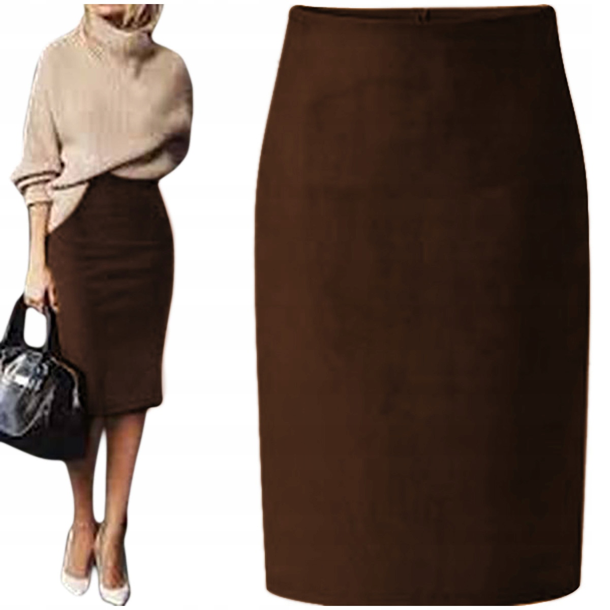 КОРИЧНЕВАЯ ЗАМШЕВАЯ ЮБКА, ТЮБИК МИДИ-КАРАНДАШ 44