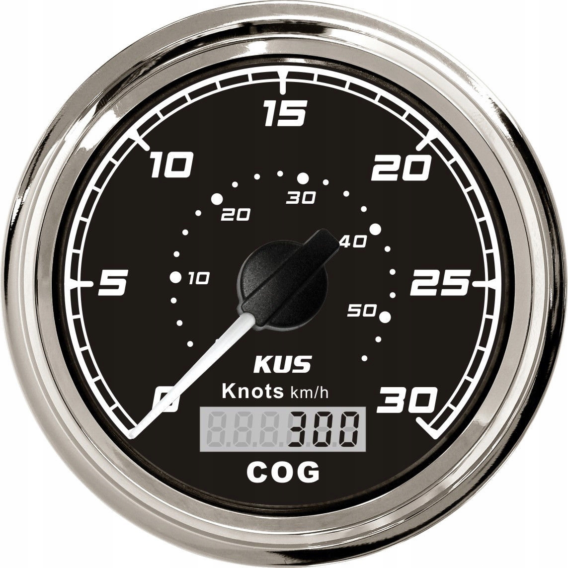 Спидометр КУС с рамкой из нержавеющей стали и стеклом из армированного двухслойного стекла с защитой от запотевания.
