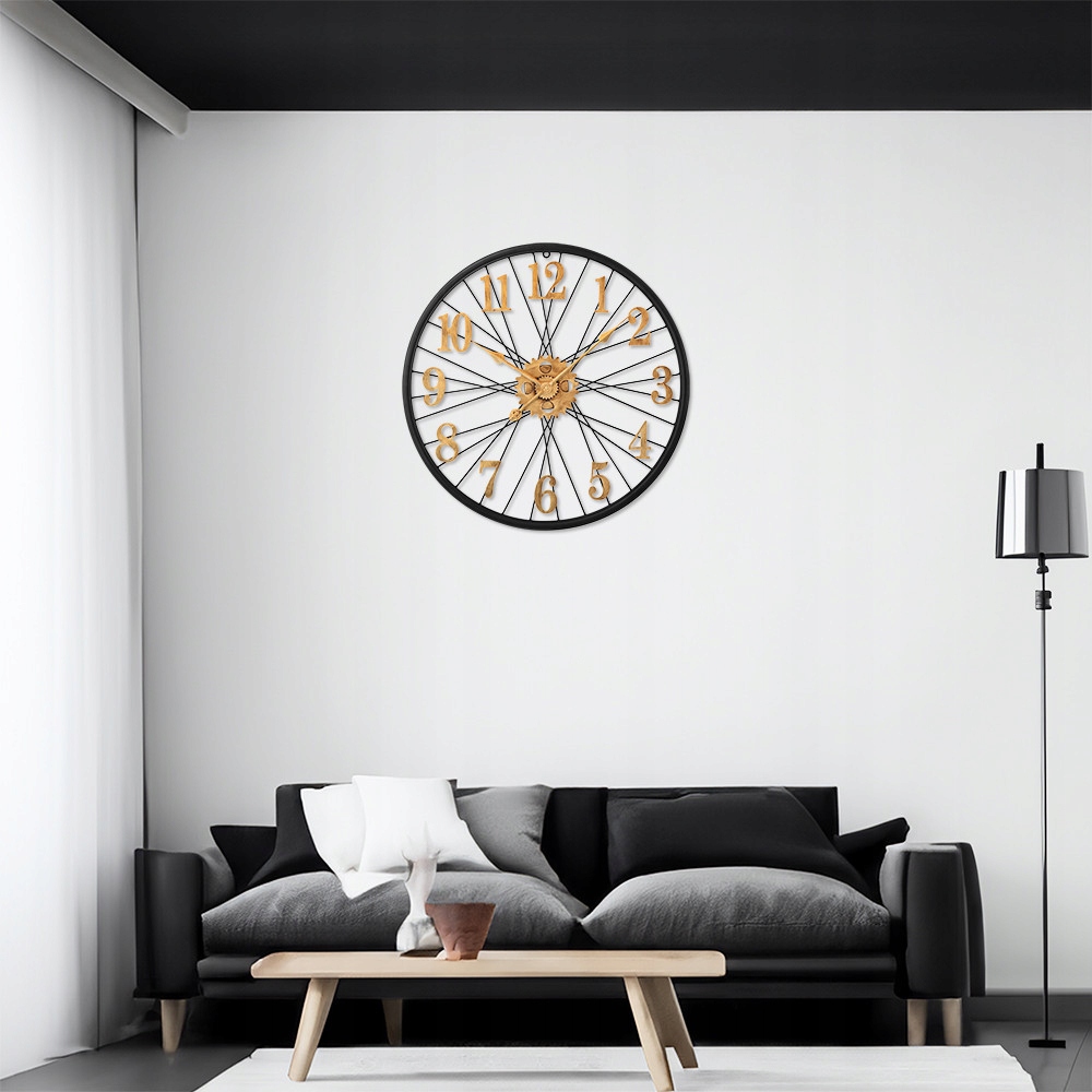 Дизайнерские металлические часы с диаметром 60 см будут радуют каждого вентилятора вентилятора. Впечатляющий переплеченный щит дополняется характерными арабскими числами и колесами передачи на золотой подушке на раме черного такта