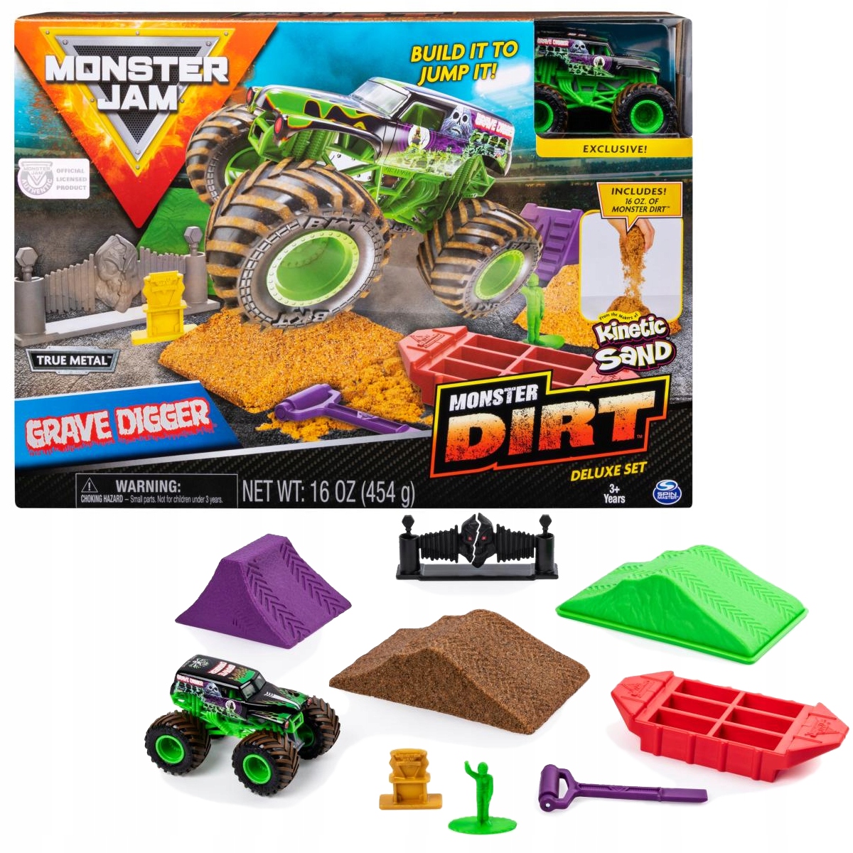 Мы представляем совершенно новый набор монстров Monster Monster Diluxe! Совершенно новая грязь Monster исходит от создателей кинетического песка - синтетической земли, которая выглядит и ведет себя как настоящая земля в Jam Monster Jam!