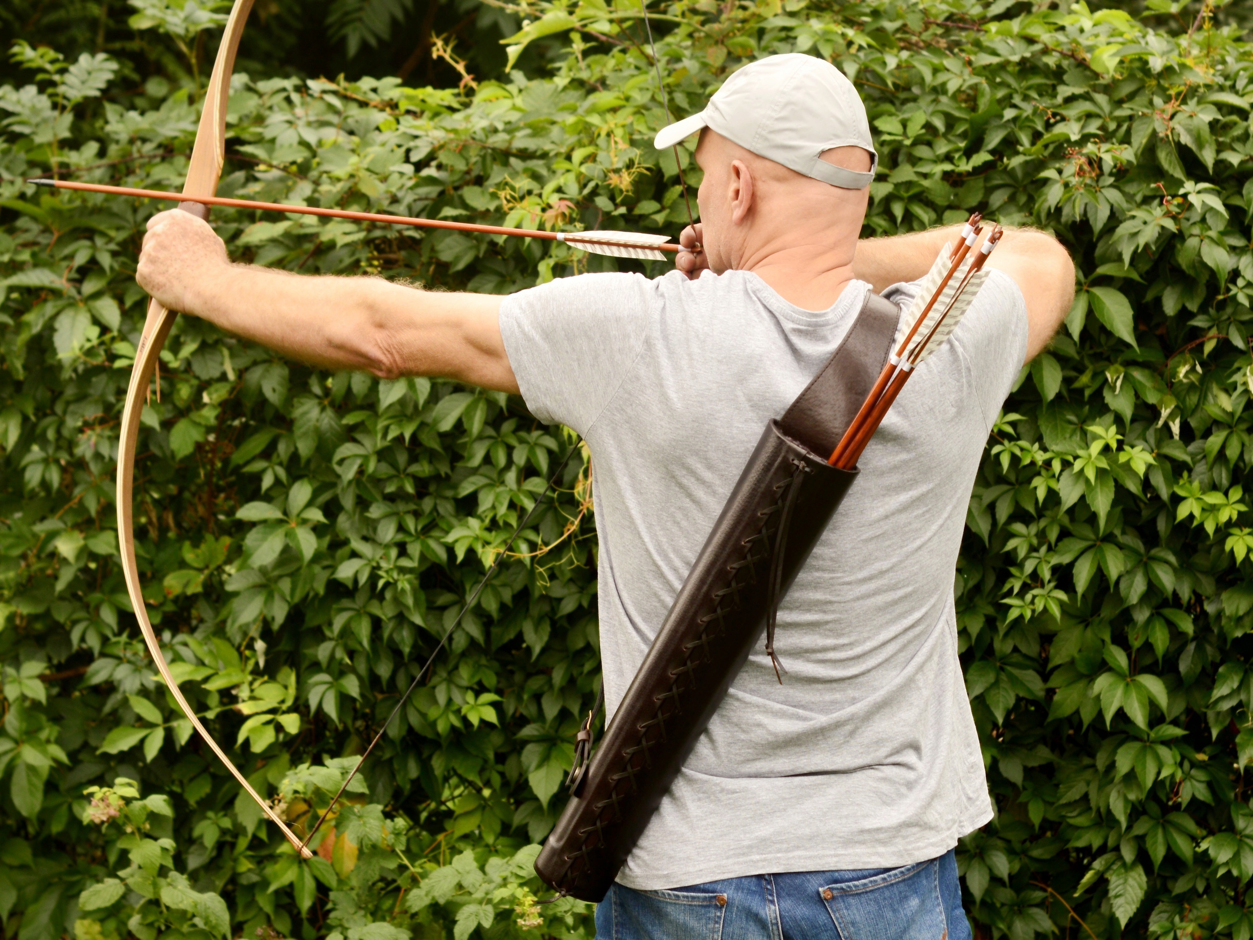 В отличие от трубчатых колчанов, плоская часть колчана прилегает непосредственно к спине, что делает его более удобным и удобным. устойчив.