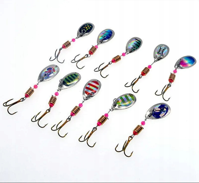 - 10 металлических вертушек реалистичных цветов, привлекающих рыбу < /li>