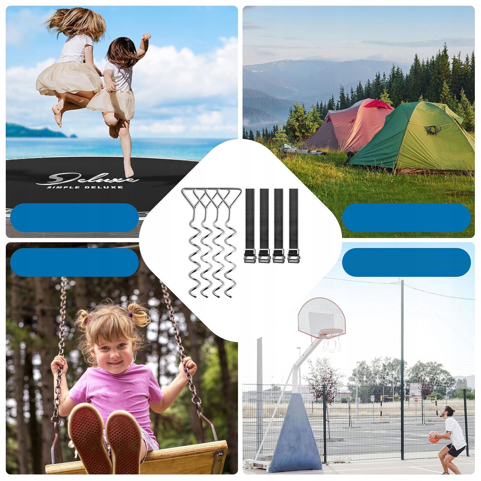✔ ✔ 【【Высокая безопасность и долгий срок службы】 40 см игл для батута и 250 см ленты, с четырьмя спиральными иглами, которые сильно закреплены в земле и держат землю. Независимо от того, насколько это извилистое или дождливое, вам не нужно беспокоиться о безопасности и обеспечивать безопасную среду для вашего наружного оборудования.