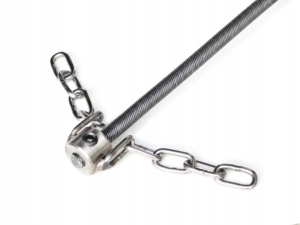 Комплект оснащен головкой из нержавеющей стали. Головка поворотная. Его диаметр регулируется одним винтом (относится к Turbosan 80 и 200). Регулировка помогает правильно подобрать диаметр чистящей цепи к диаметру трубы. Диапазон регулировки зависит от модели ТУРБОСАН: