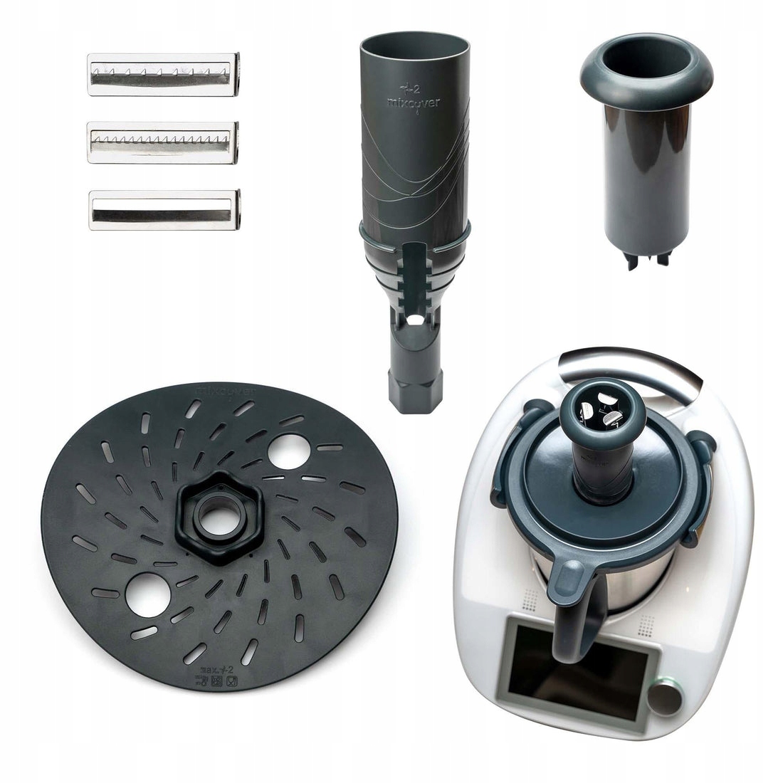 Насадка для спиральной резки, совместимая с вашими TM6 и TM5, представляет собой практичное решение для вашего кухонного комбайна Thermomix, состоящее из трех частей и трех различных насадок для лезвий. Сборка и разборка просты и интуитивно понятны, поэтому использовать эту функцию можно быстро и удобно.