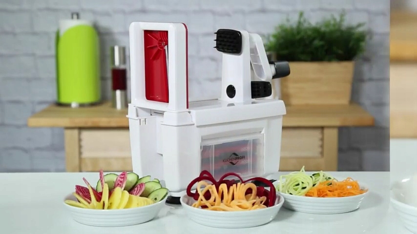 - позволит вам быстро и безопасно разрезать фрукты и овощи на ломтики, спагетти или спиральные полоски