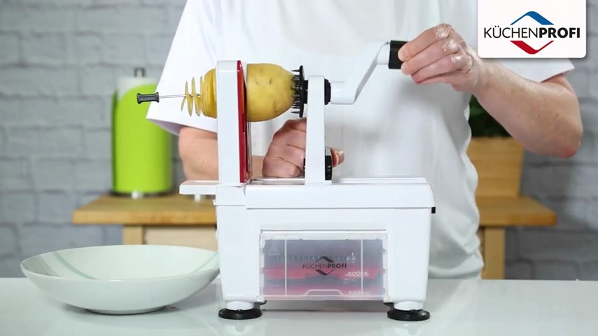 Пятна картофеля в широкую ленту, которую можно вылить на палочки и жарить в Deep Fat или кастрюлю. выполняется быстро и не требует использования большого количества силы, Slicer прилипает к земле с сильными всасывающими чашками