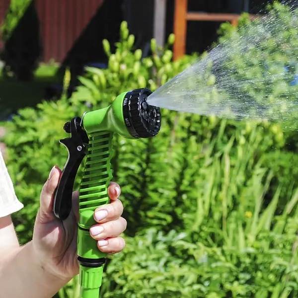 Добавляем многофункциональная насадка к нашему шлангу.b> которую можно настроить от нежной струи, которая не повредит растениям и не порадует вашего питомца в жаркий день, до сильной струи, которая поможет помыть машину.