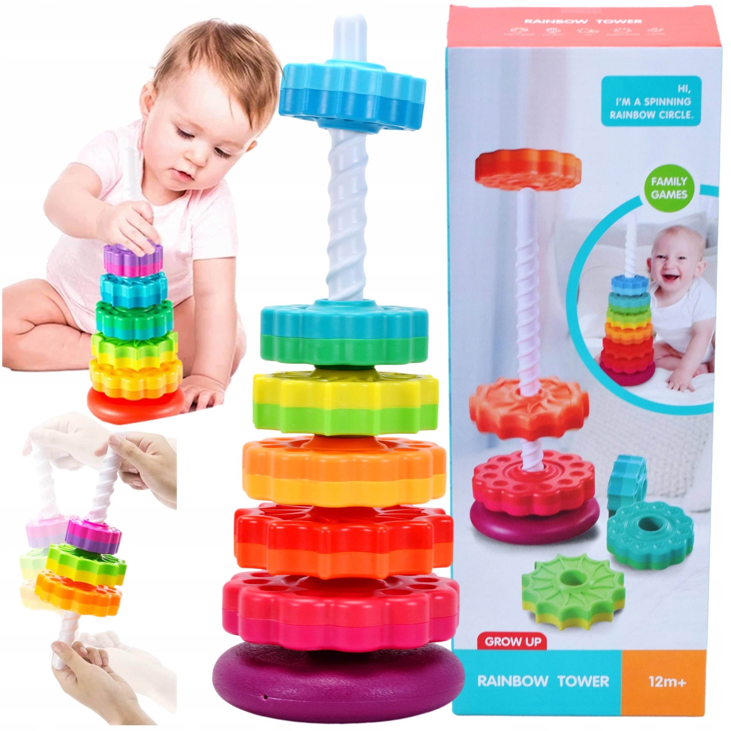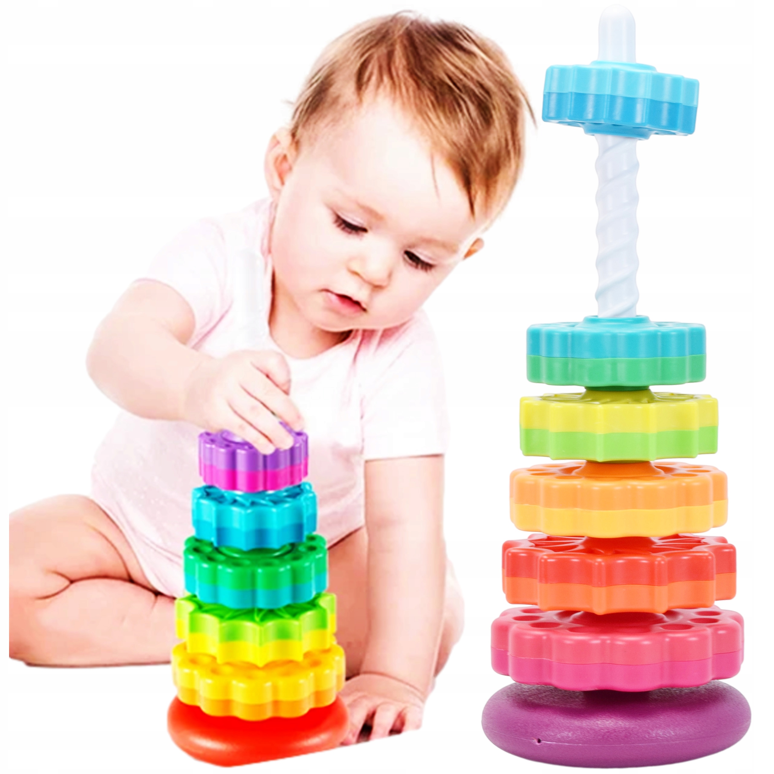 ✅ Красочная башня состоит из шести позвонков, которые находятся в разных цветах и имеют различные резьбы. Задача малыша состоит в том, чтобы применить все круги к пластиковому стержне, который также имеет интересную текстуру!