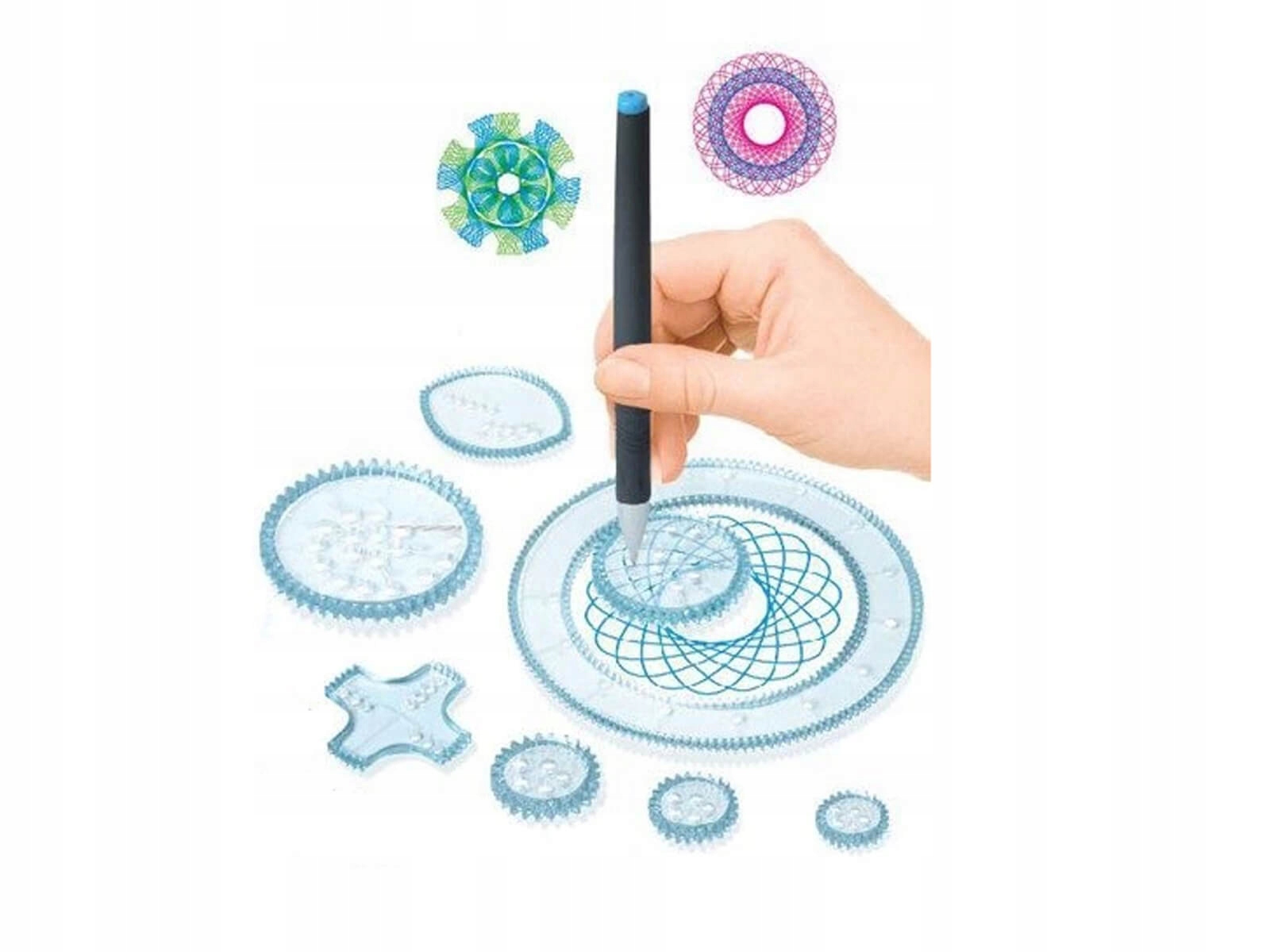 - Спирограф или творческий набор для рисования сумасшедших фигур, форм и спирали