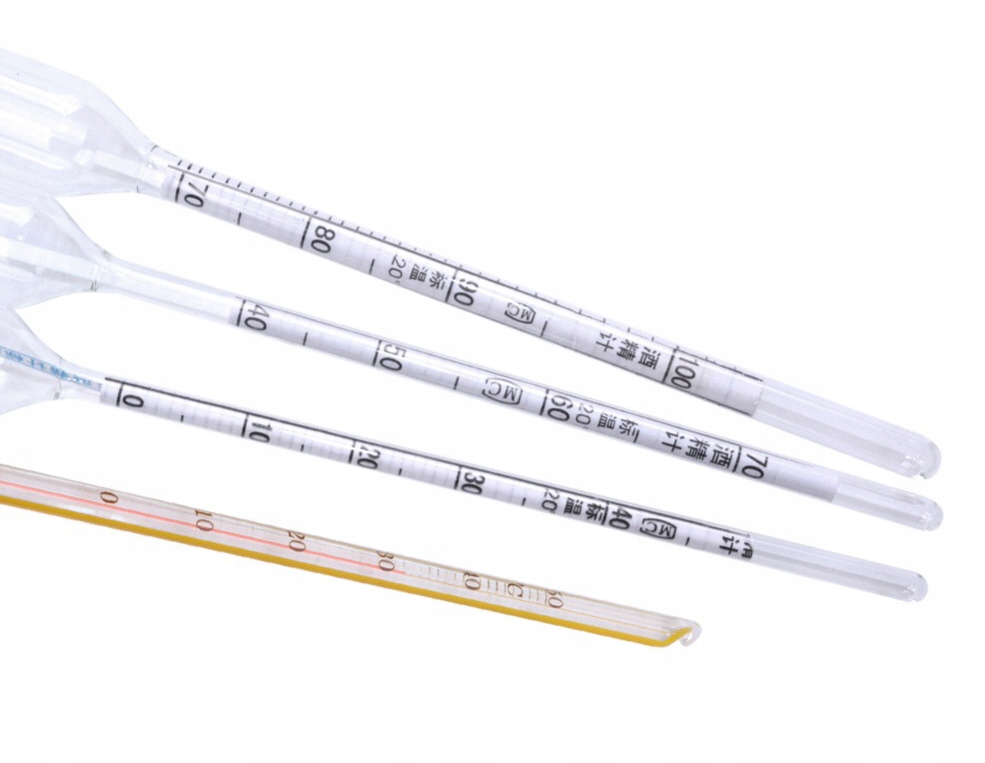 - размеры спиртометра [см]: диаметр 1,5, длина ~20,0