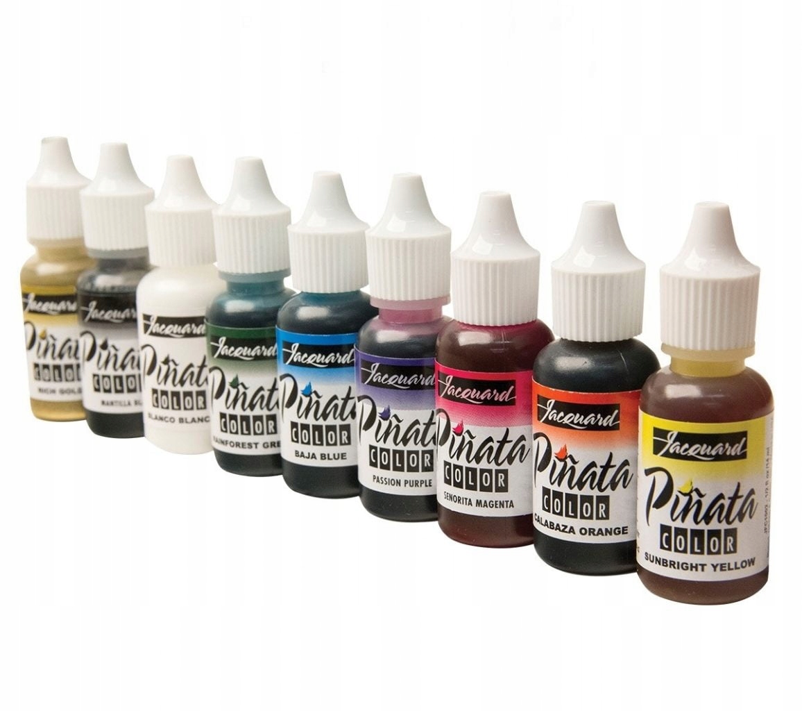 Спиртовые чернила Jacquard Pinata характеризуются высокой концентрацией пигмента, насыщенными цветами и коротким временем высыхания. Их интенсивность и яркость необыкновенны и позволяют добиться широкого спектра различных эффектов на самых разных поверхностях, таких как: стекло, металл, пластик, керамика, камень, кожа, смола, акриловая глина и многие другие.