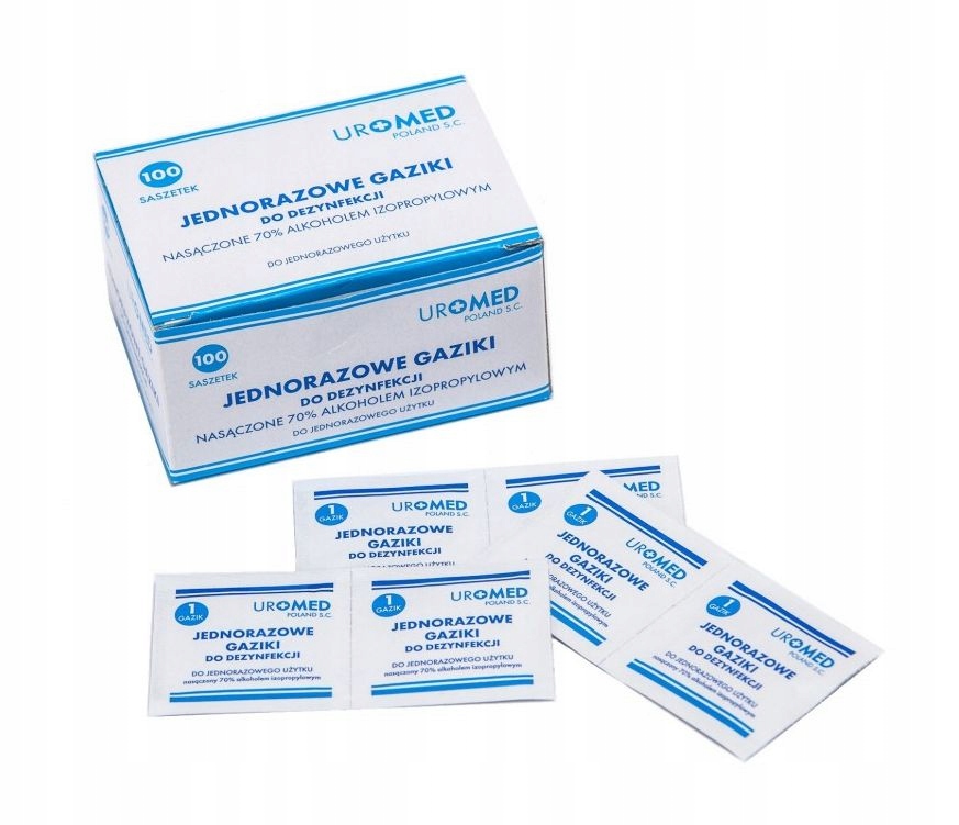 Каждый пакетик содержит марлевый тампон, смоченный 70% изопропиловым спиртом, размером 60 мм х 60 мм.