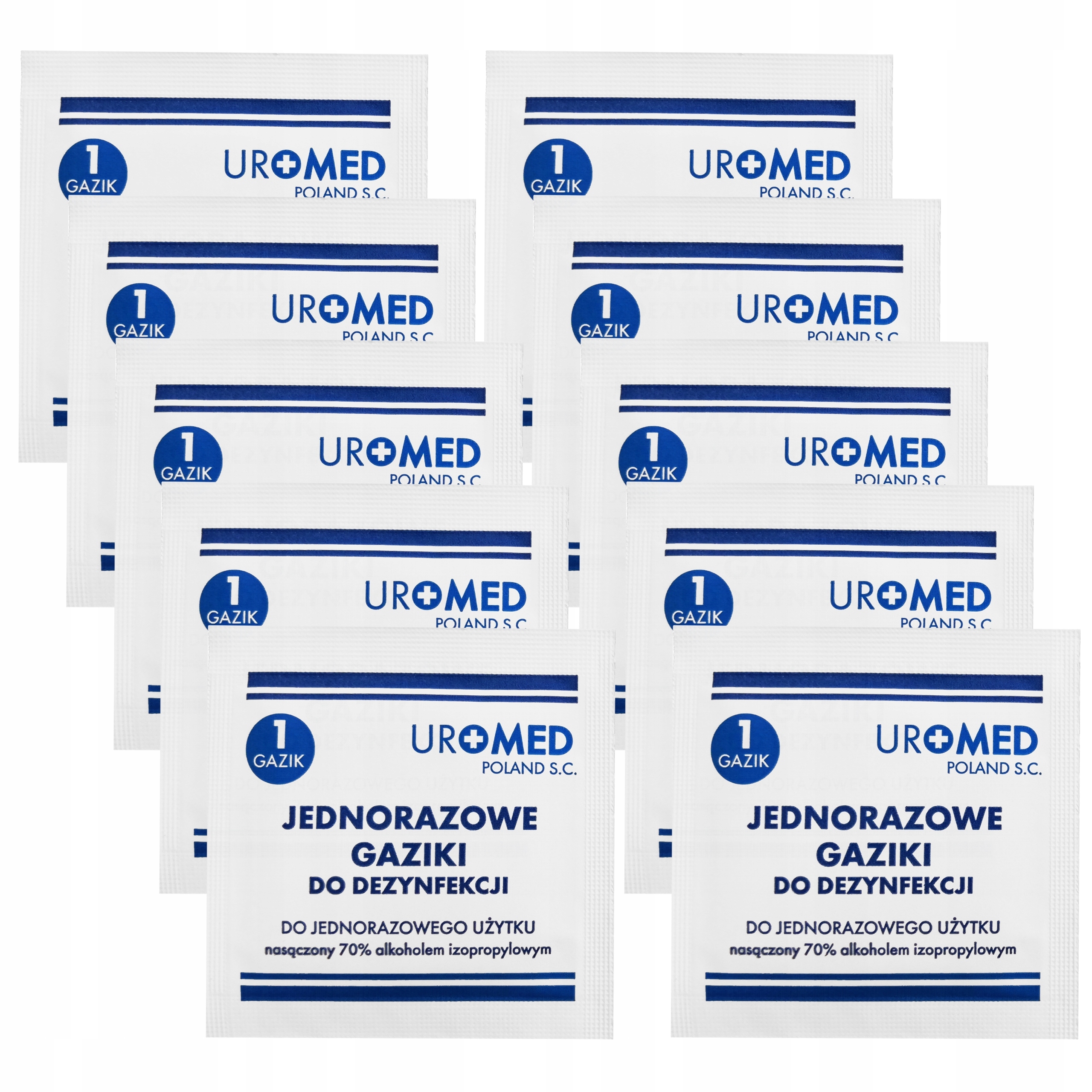 Тампоны дезинфицирующие, смоченные 70% изопропиловым спиртом, одноразовые, 10 шт., торговая марка УРОМЕД.