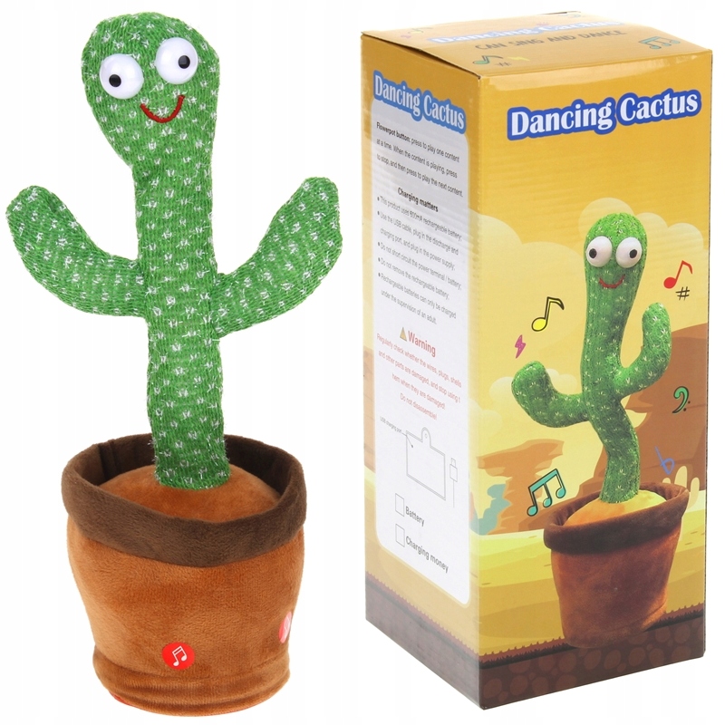 Фантастический плюшевый кактус поднимет настроение каждому, вызовет улыбку на лице и принесет много радости и смеха. Талисман имеет две встроенные кнопки на горшке. После нажатия правой кнопки кактус начнет весело танцевать в ритме музыки, изгибаясь во все стороны. Привлекательность кактуса – возможность насмешек. Просто нажмите левую кнопку, скажите что-нибудь, и кактус повторит это своим забавным голоском, двигаясь во все стороны. Веселый талисман понравится не только детям, но и взрослым.