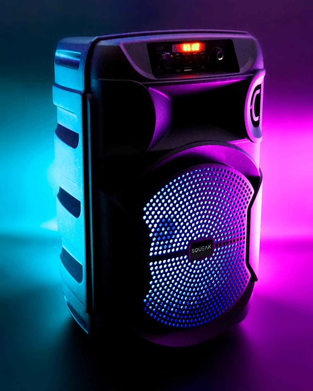 У вас есть шанс познакомиться со всеми деталями этого уникального устройства. Посмотрите, насколько элегантно и солидно корпус, насколько эффективно красочная диско -подсветка, и другие функции, которые делают Squeak Puletower идеальным выбором для каждого любителя музыки