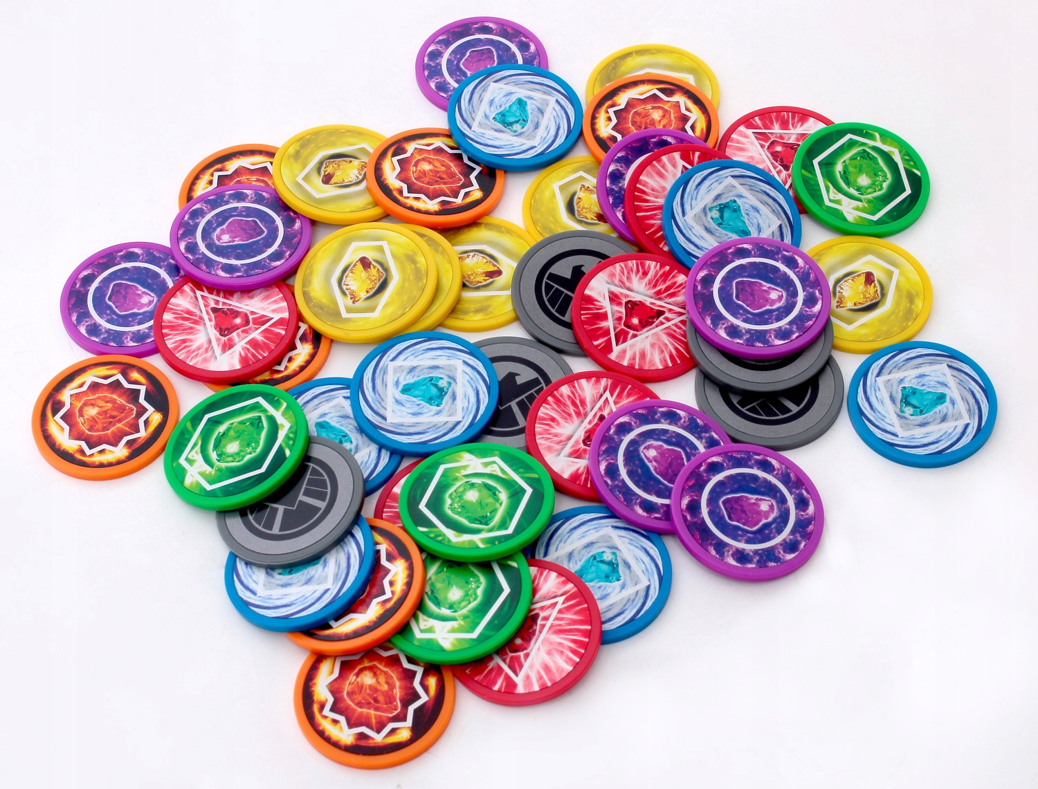 - Плитка Мстителей. В дополнение к стандартным целям за 3 места игроки также соревнуются за тайл Мстителей, который приносит 3 очка. Для его получения требуется минимум 3 символа Мстителей (их можно найти на картах персонажей), но если один из игроков получит больше символов, он может забрать плитку и связанные с ней 3 победных очка.