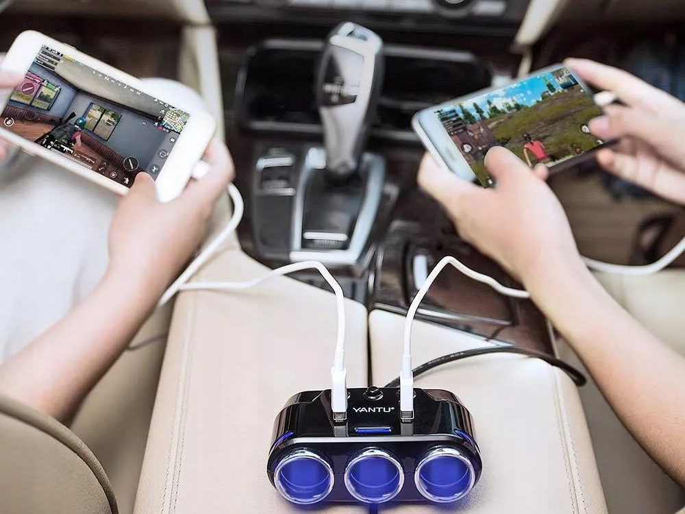 Он имеет 2 USB-порта и 3 гнезда прикуривателя, а благодаря небольшому размеру его можно спрятать в удобном месте.