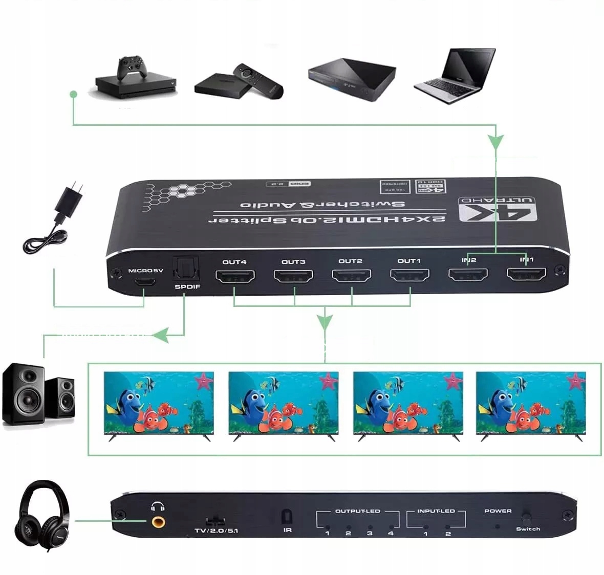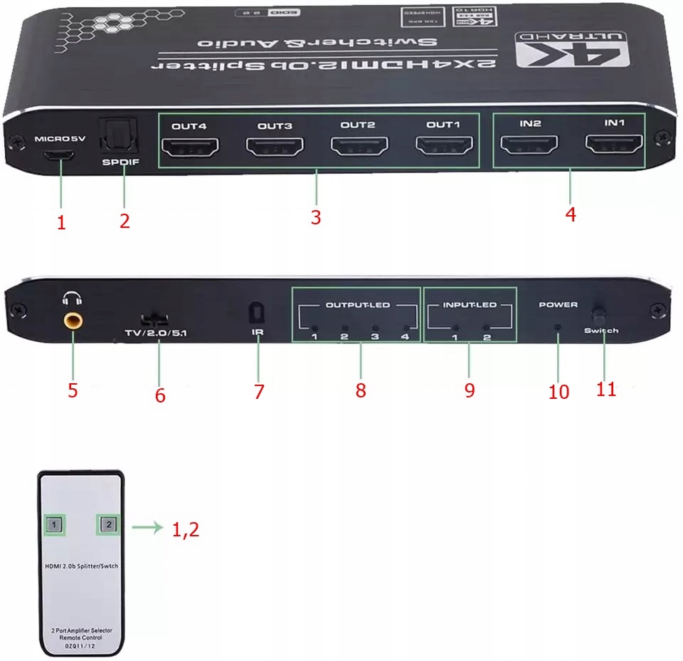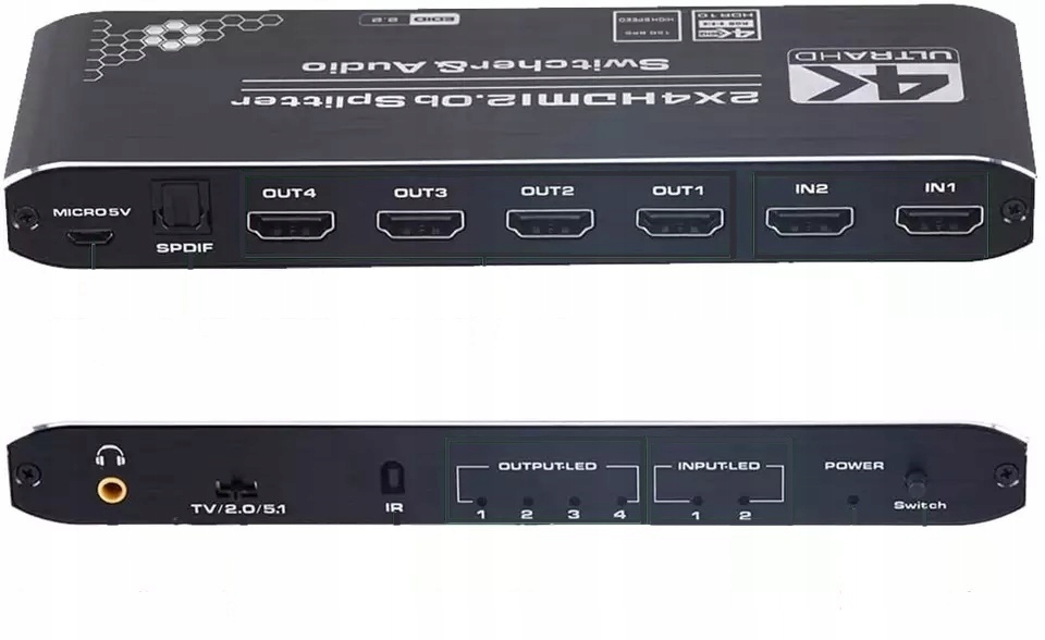 СПЛІТЕР HDMI 2.0 2x4 SWITCH HDCP 2.2