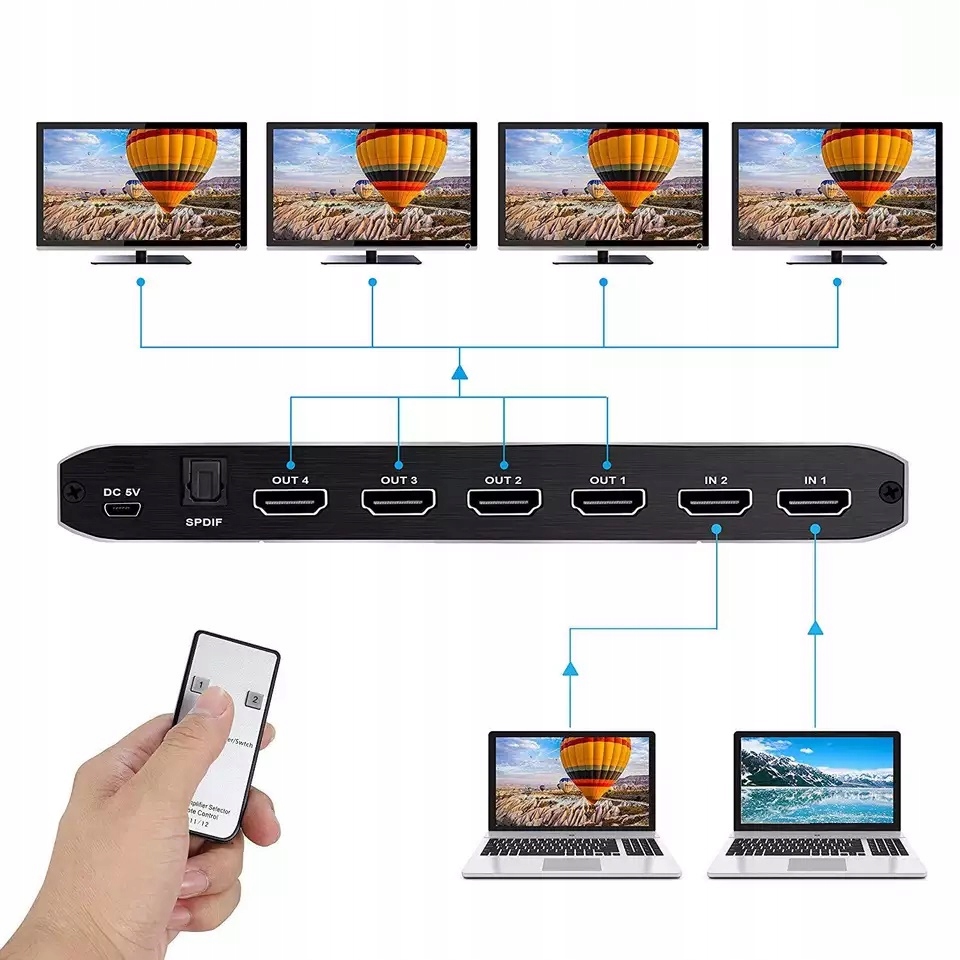 Разветвитель делит сигнал HDMI на 4 приемника