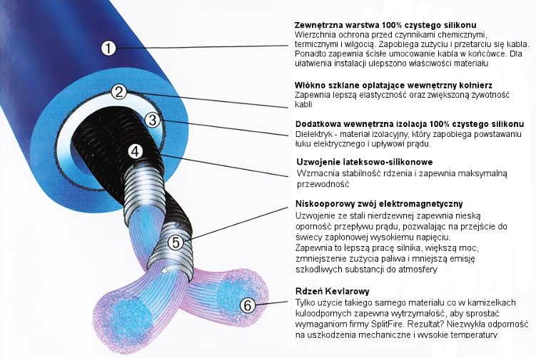 Два -проводные кабели зажигания Splitfire -это продукт, который вам не нужно рекомендовать. У них есть два низкокачественных электромагнитных ядра, защищенных дополнительным слоем стекловолокна и внешним покрытием из 100% чистого силикона, для удовлетворения наиболее экстремальных условий. Точно сделать кончик разъема и верхний слой, обеспечивая простую и точную установку кабеля.