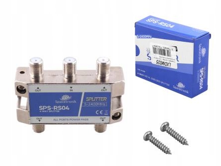 Высококачественный экранированный разветвитель с низкими потерями (разветвитель ТВ-сигнала), с 1 входом и 4 выходами. Spacetronik SPS-RS04 работает в диапазоне 5–2400 МГц. Все порты имеют разъемы «F».